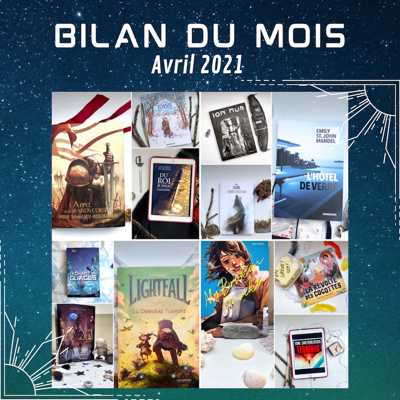 Avril a commencé par un coup de coeur fulgurant et c'est une pluie d'excellentes lectures qui s'est ensuite enchainée, avec quelques bas dans tous ces hauts mais offrant un bilan du mois gloablement très enthousiaste. Un mois plein d'évasion, d'émotions aussi, d'auteur.ices valeurs sûres qui ont encore prouvé leur talent. Un joli mois qui fait aussi apparaître les beaux jours. J'en veux des comme toute l'année!