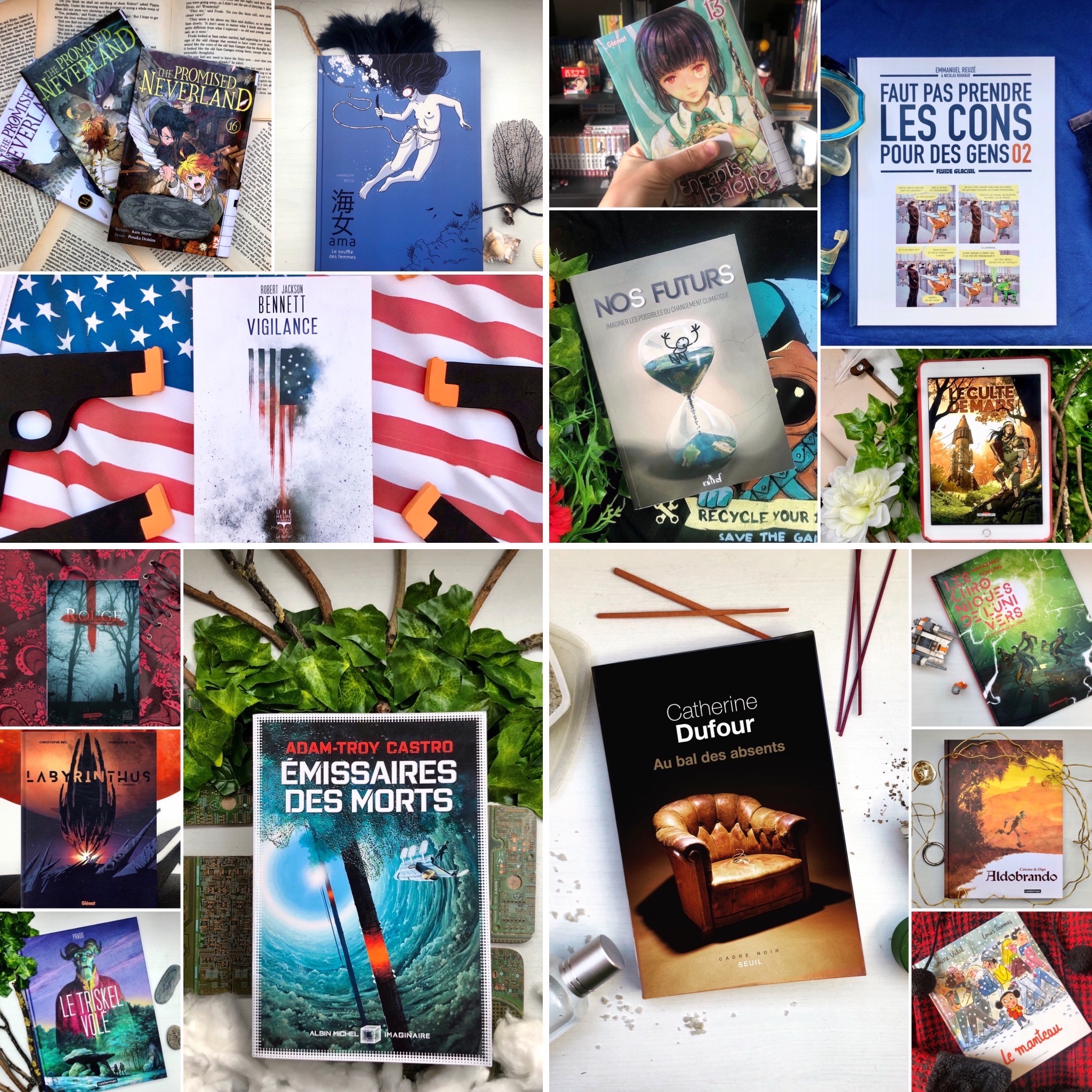 - 17 lectures : 7 BD + 4 mangas + 3 romans (dont 1 avec 4 nouvelles) + 1 recueil de nouvelles/documentaires + 1 novella + 1 album jeunesse