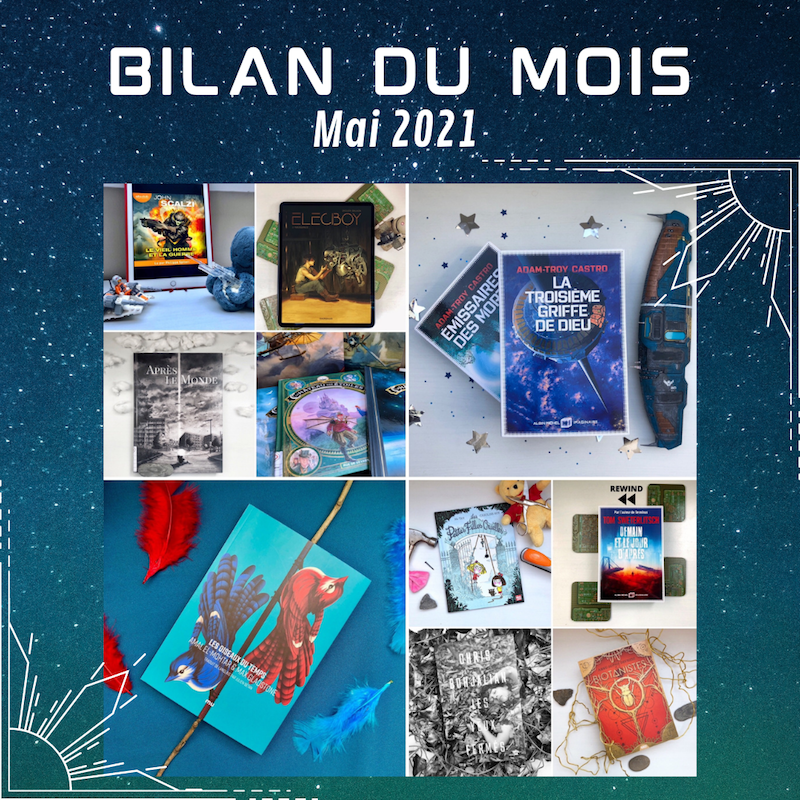 Mai a été un mois un peu compliqué côté personnel, ce qui a diminué un peu le rythme de lectures (combiné aux streams GTA RPZ aussi, ça n'a pas aidé!). Mais cela n'aura pas empêché de beaux moments d'évasion et belles découvertes. Qui dit compliqué, dit recours aux genres favoris pour s'assurer de belles lectures, et c'est donc 80% de livres de SF qui furent au programme et aucune déception n'est à déplorer! On peut toujours compter sur la SFFF pour nous faire du bien.